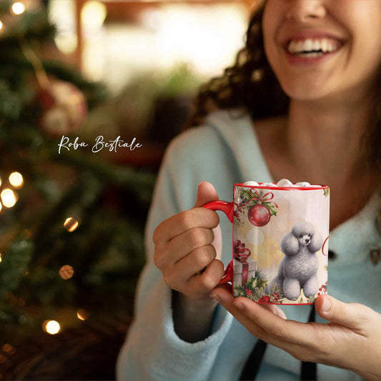 Tazza VINTAGE WINTER - BARBONE Media Mole Marrone - In Ceramica, con dettagli Rossi - 330 ml