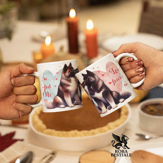 Tazza LOVE ME - AKITA AMERICANO Bianco e Marrone - In Ceramica, con dettagli Rossi - 330 ml