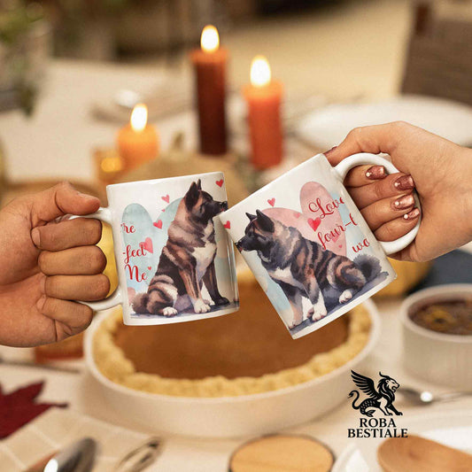 Tazza LOVE ME - AKITA AMERICANO Bianco e Nero - In Ceramica, con dettagli Rossi - 330 ml