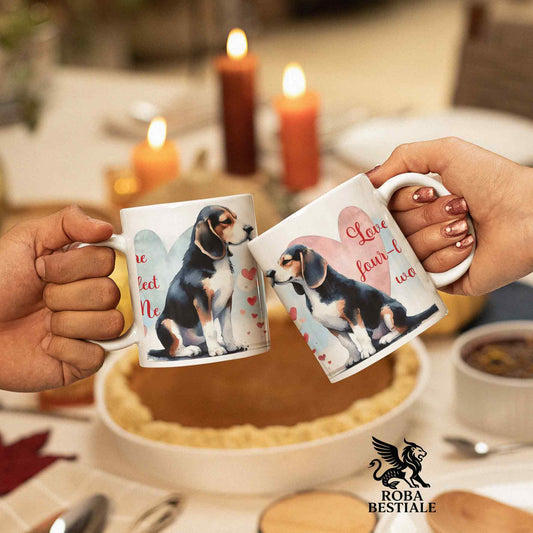 Tazza LOVE ME - BEAGLE Tricolore Nero - In Ceramica, con dettagli Rossi - 330 ml