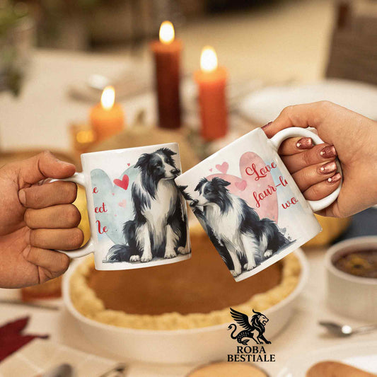 Tazza LOVE ME - BORDER COLLIE Bianco e Nero - In Ceramica, con dettagli Rossi - 330 ml