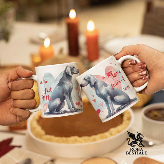 Tazza LOVE ME - WEIMARANER Grigio Argento - In Ceramica, con dettagli Rossi - 330 ml