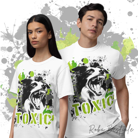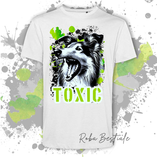 T-Shirt TOXIC - BORDER COLLIE - Bianca, Uomo o Donna - dalla XS alla 5XL