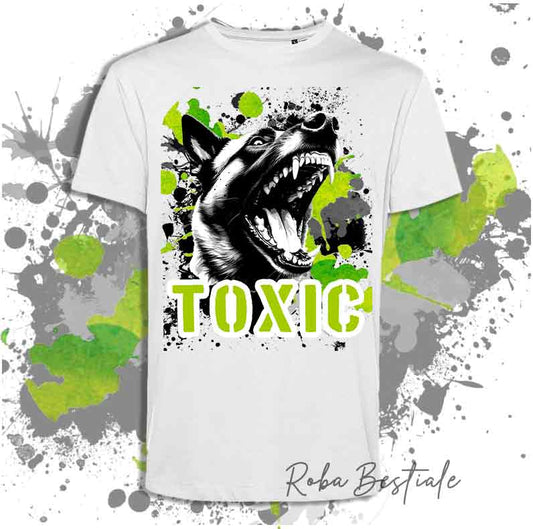 T-Shirt TOXIC - PASTORE BELGA MALINOIS - Bianca, da Uomo o da Donna - dalla XS alla 5XL