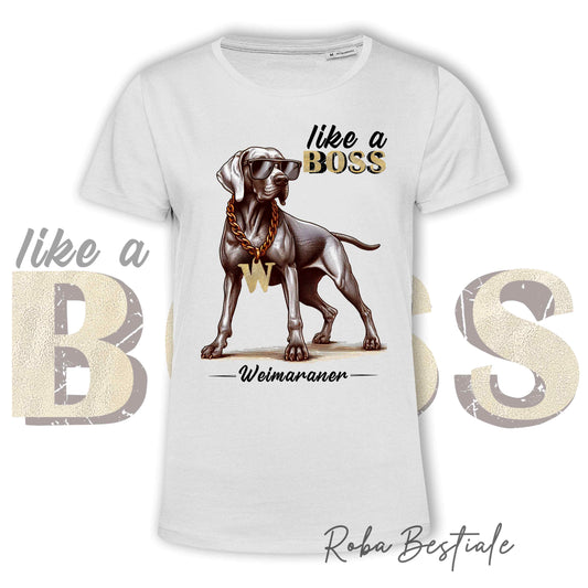 T-Shirt LIKE A BOSS - WEIMARANER - 100% Cotone, Bianca, Uomo o Donna - dalla XS alla 5XL