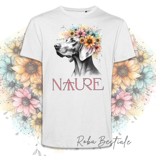 T-Shirt NATURE - WEIMARANER - Bianca, Uomo o Donna - dalla XS alla 5XL