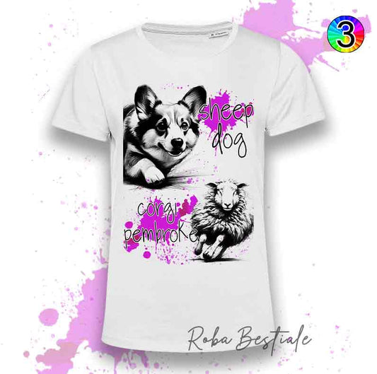 T-Shirt FLASHY SHEEPDOG - WELSH CORGI PEMBROKE - Scritta Olografica Cangiante!