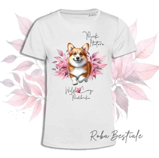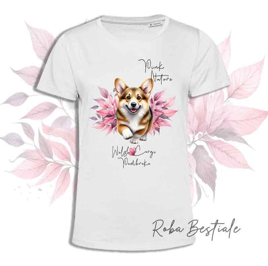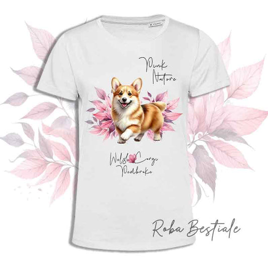 T-Shirt PINK NATURE - WELSH CORGI PEMBROKE Fulvo - Uomo o Donna - dalla XS alla 5XL
