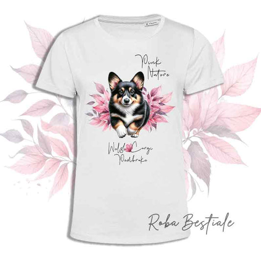 T-Shirt PINK NATURE - WELSH CORGI PEMBROKE Black Tricolor - Uomo o Donna - dalla XS alla 5XL