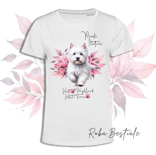 T-Shirt PINK NATURE - WEST HIGHLAND WHITE TERRIER - Uomo o Donna - dalla XS alla 5XL