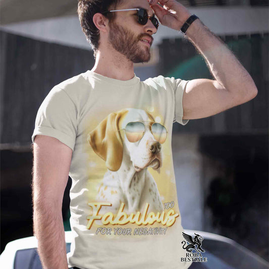 T-Shirt TOO FABULOUS - POINTER INGLESE Bianco e Nero - 100% Cotone, Bianca o Beige, Uomo o Donna - dalla XS alla 5XL