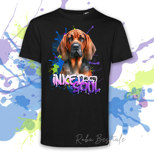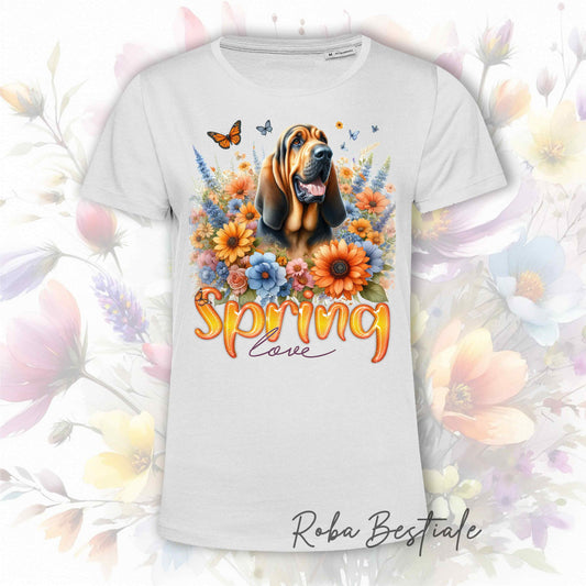 PEONY T-Shirt - BLOODHOUND Black and Tan (with saddle) - White, Men or Women - XS to 5XL