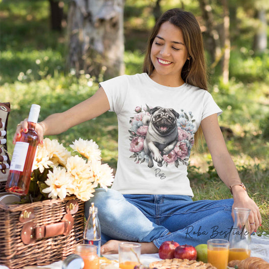 PEONY T-Shirt - Pug Black - White or Beige, Men or Women, XS to 5XL