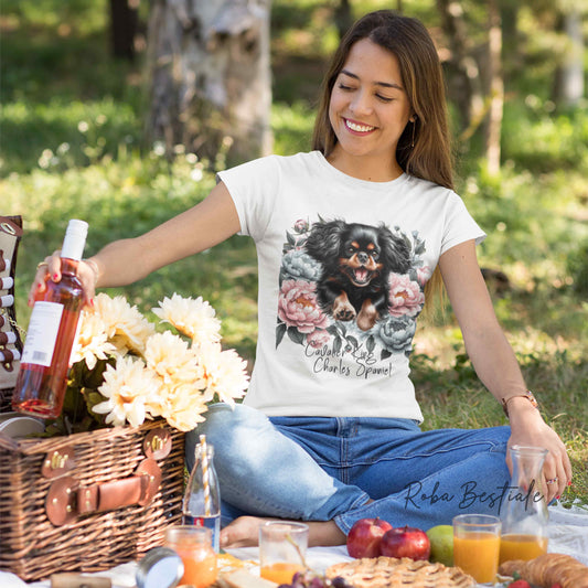 PEONY T-Shirt - CAVALIER KING CHARLES SPANIEL Black and Tan - White or Beige, Men or Women, XS to 5XL