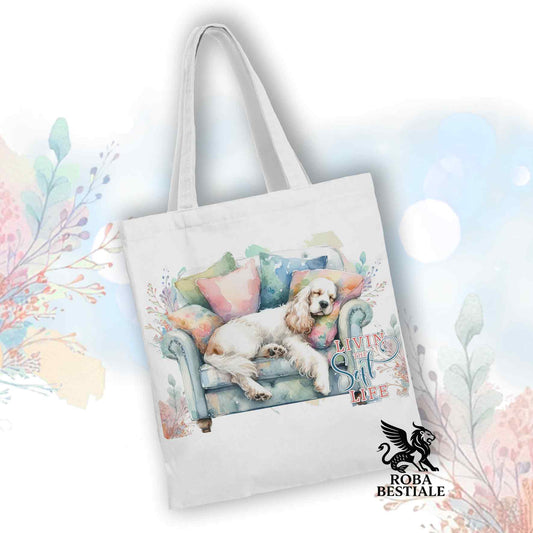 Tote Bag SOFT LIFE - COCKER SPANIEL INGLESE Dorato - 100% Cotone - Bianca o Beige
