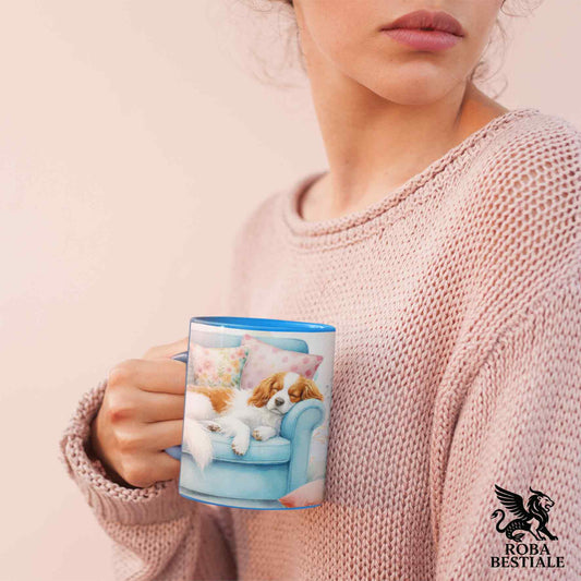 Tazza SOFT LIFE - EPAGNEUL BRETON Bianco e Marrone - In Ceramica, colore a scelta - 330 ml