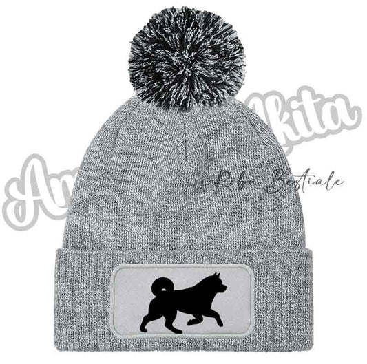 AMERICAN AKITA Beanie - Winter Hat with Pom Pom - BLACK, NAVY BLUE or GREY - Silhouette in your choice of color