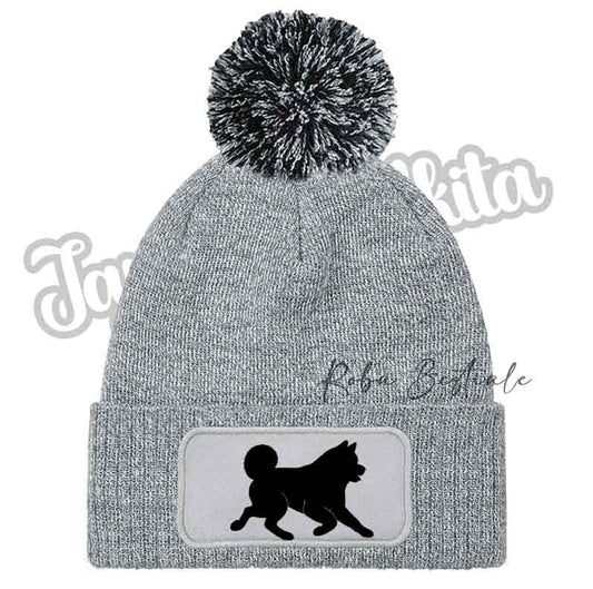 AKITA INU Beanie - Winter Hat with Pom Pom - BLACK, NAVY BLUE or GREY - Silhouette in your choice of color