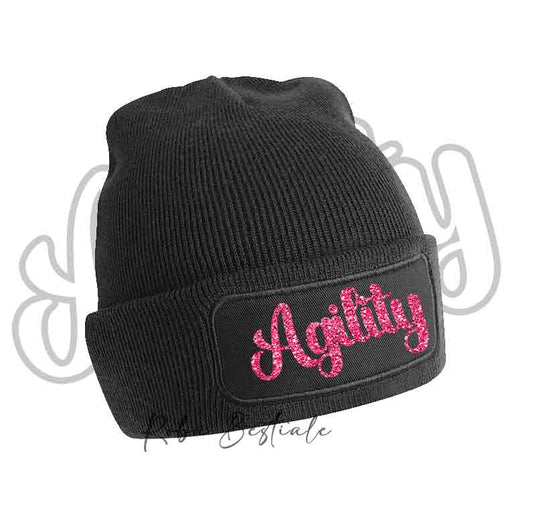 Beanie AGILITY - Winter Hat BLACK, BLUE NAVY or BABY PINK - Writing in color of your choice