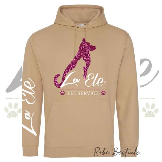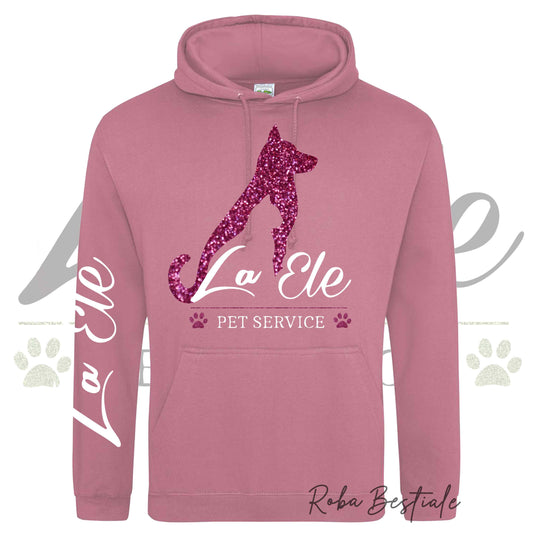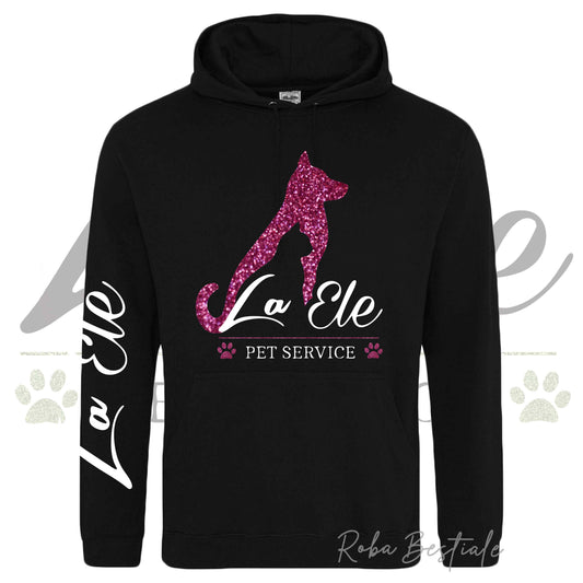 Winter Sweatshirt - LA ELE Pet Service - GLITTER PINK Logo - Black or White, with Hood - from XS to 5XL