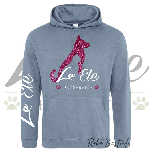 Winter Hoodie - LA ELE Pet Service - GLITTER PINK Logo - Many Shades of BLUE! Hooded - Sizes XS to 3XL