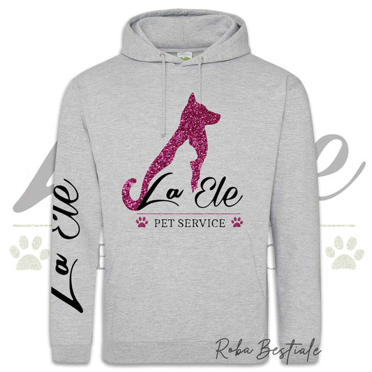Winter Hoodie - LA ELE Pet Service - GLITTER PINK Logo - Many Shades of GREY! Hooded - Sizes XS to 3XL