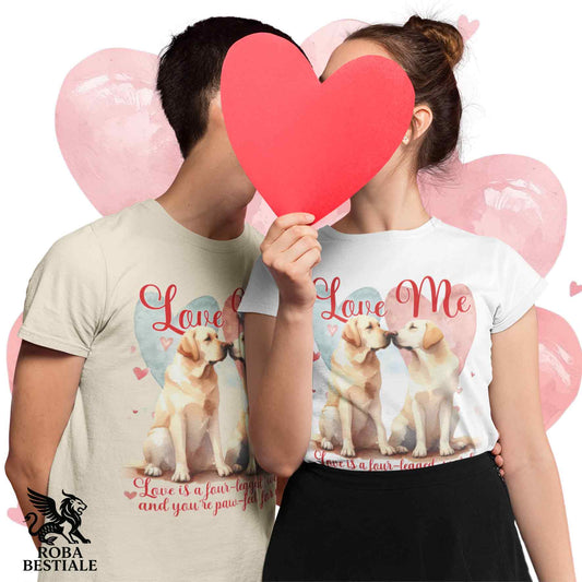 T-shirt LOVE ME - LABRADOR RETRIEVER Giallo - Bianca o Beige, Uomo o Donna - dalla XS alla 5XL