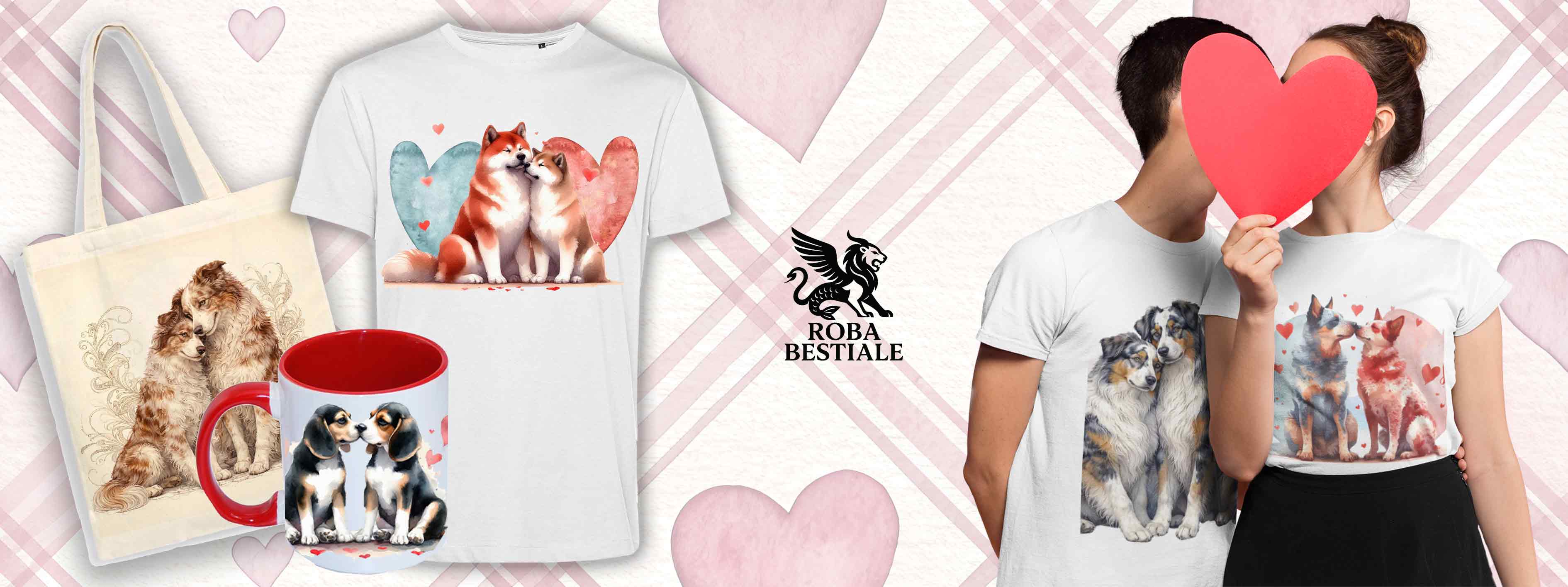 T-shirt LOVE ME - AKITA AMERICANO Bianco e Nero - Bianca o Beige, Uomo o Donna - dalla XS alla 5XL