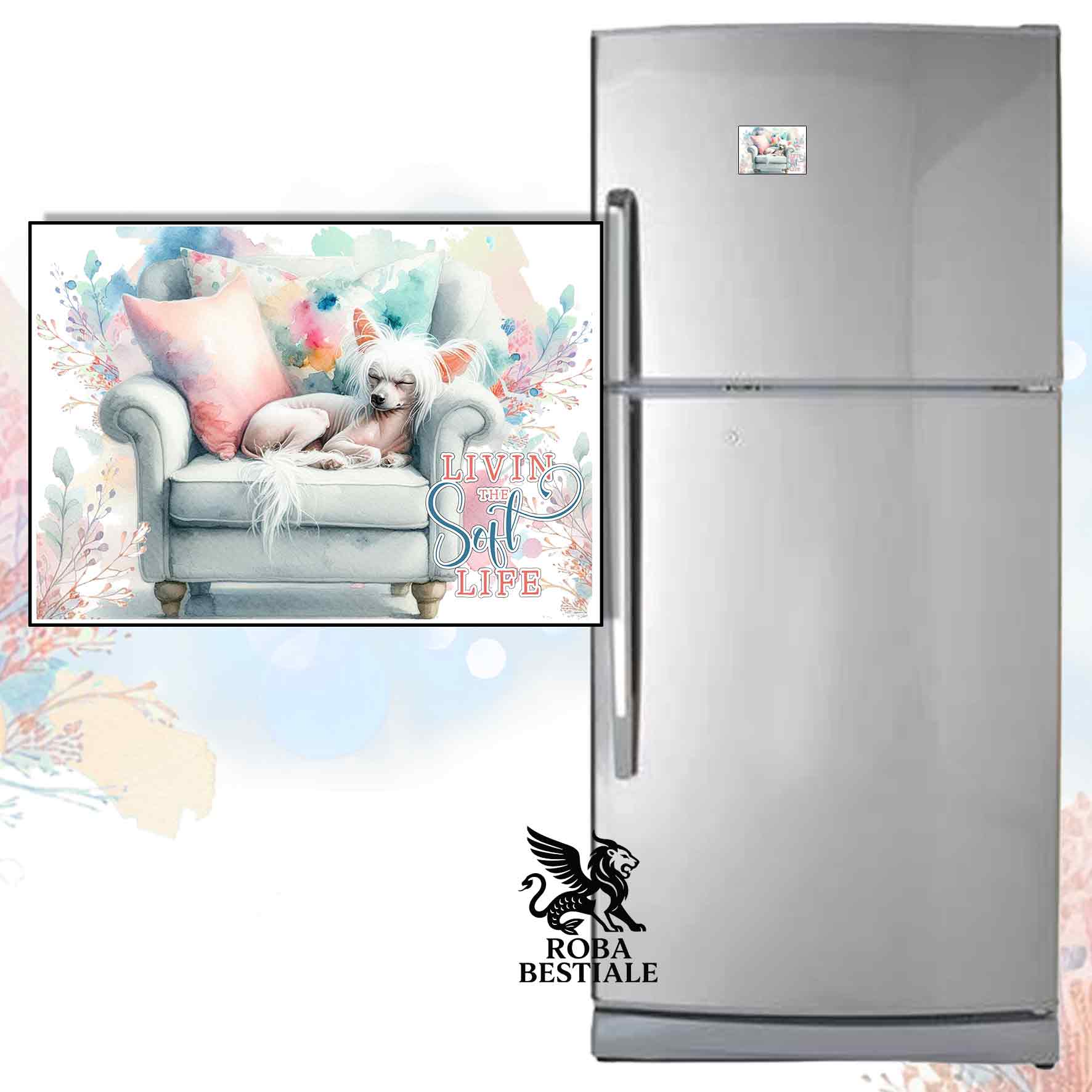 Calamita SOFT LIFE - CHINESE CRESTED DOG Hairless Bianco - in MDF - 7x5 cm