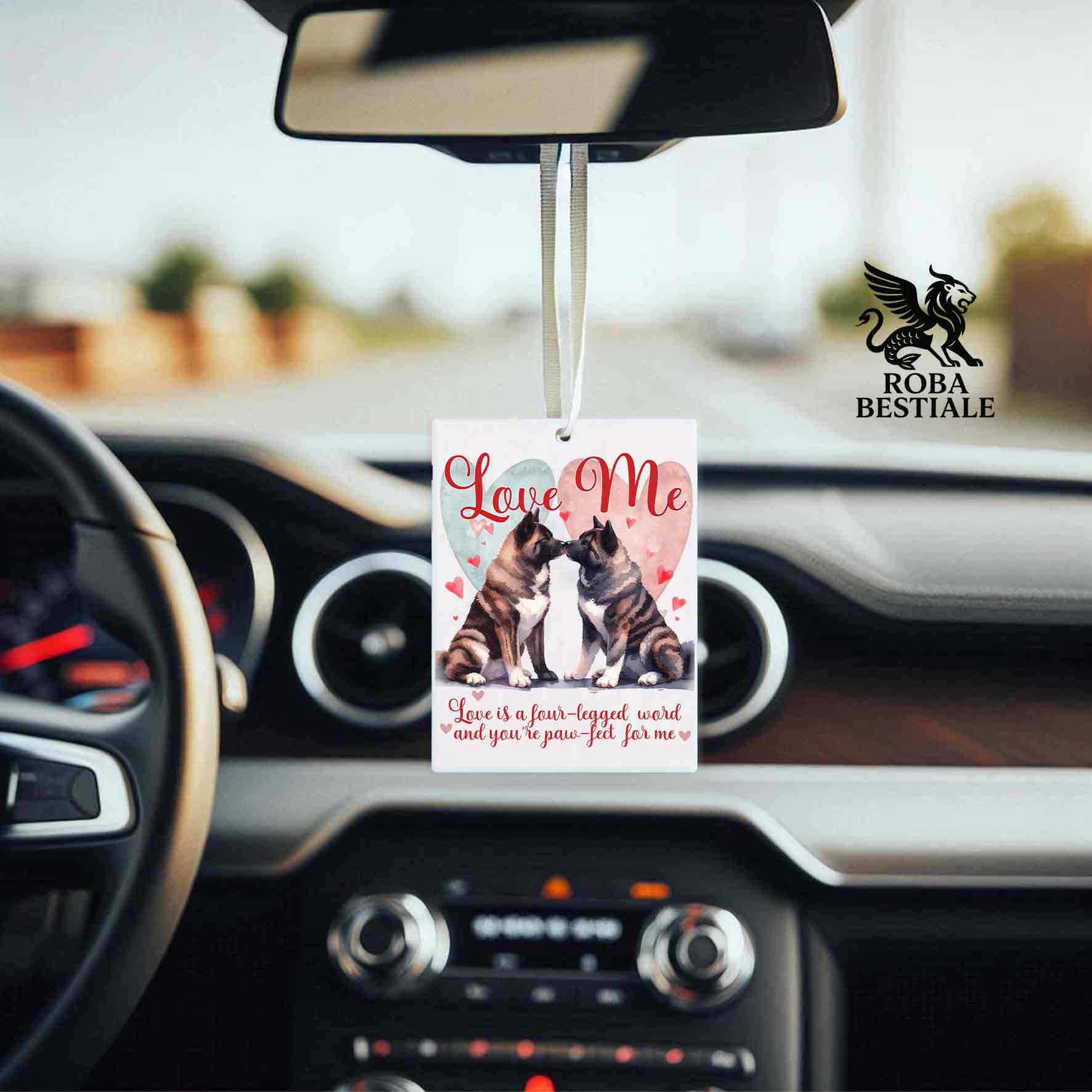 Deodorante Auto LOVE ME - AKITA AMERICANO Tigrato - In Feltro, con cordino - 7,5 x 10 cm