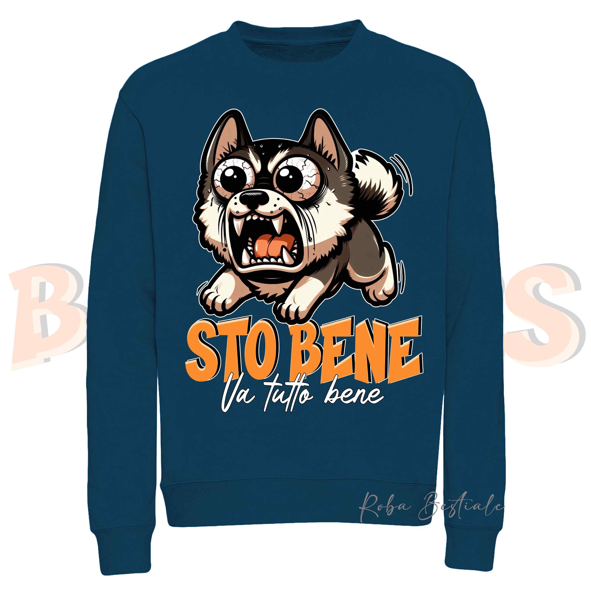 Felpa Invernale BONKERS - STO BENE - AKITA AMERICANO - Girocollo, Unisex, in tanti colori! - dalla XS alla 3XL