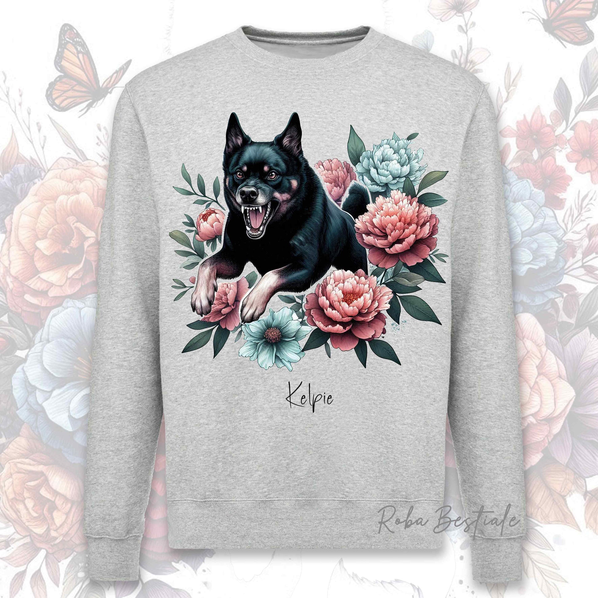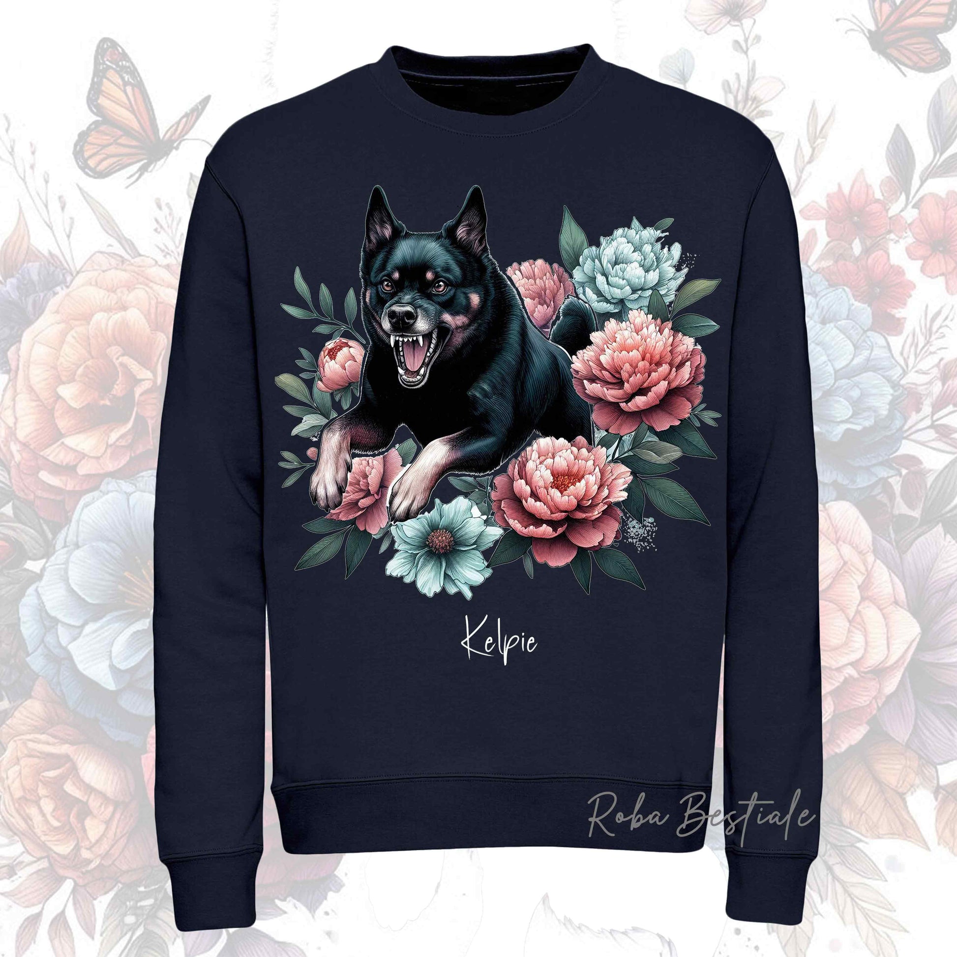 Felpa Invernale PEONY - AUSTRALIAN KELPIE Nero Focato - Girocollo, Unisex, in tanti colori! - dalla XS alla 3XL