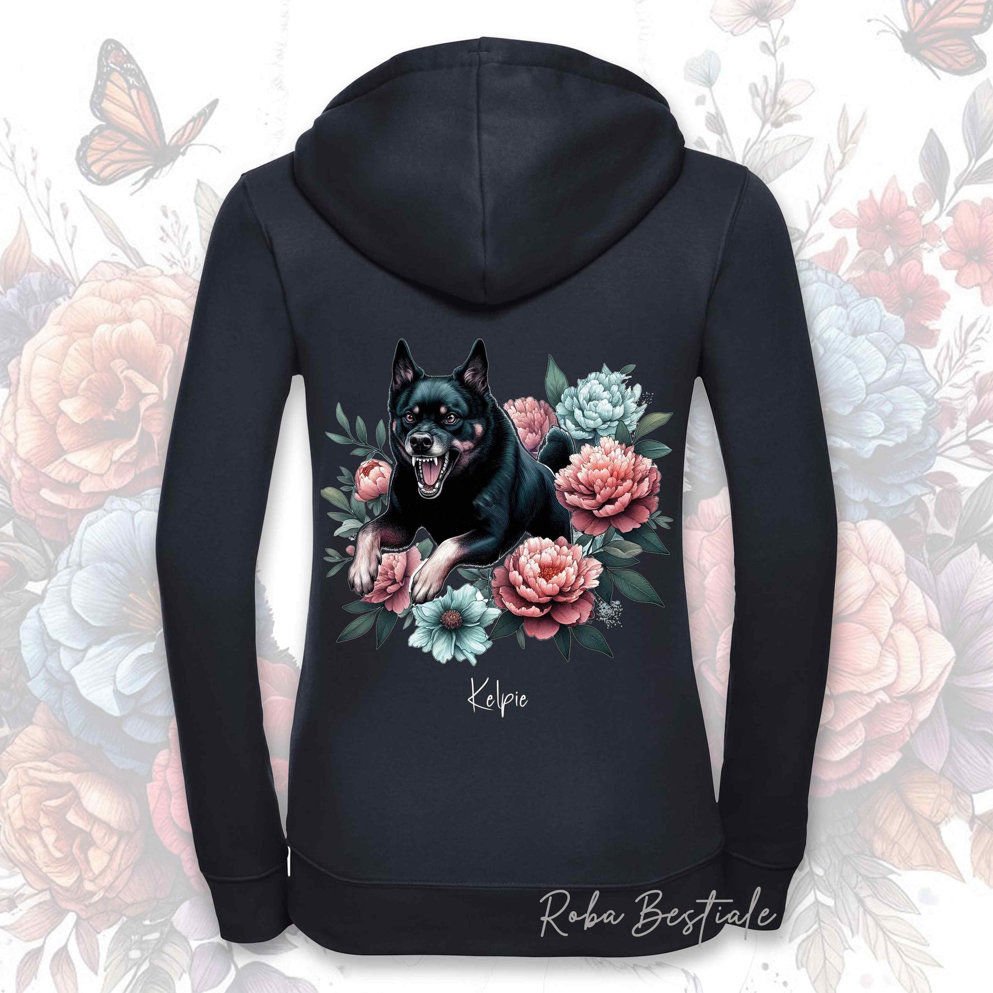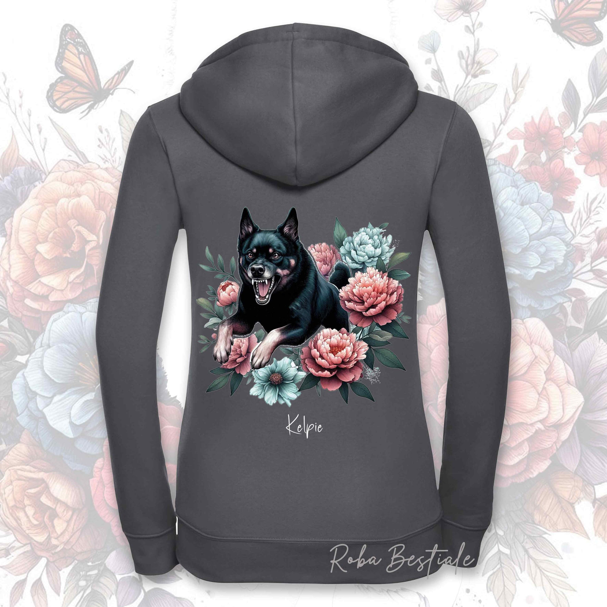 Felpa PEONY - AUSTRALIAN KELPIE Nero Focato - Con Cappuccio e Full Zip, Uomo o Donna, in tanti colori - dalla XS alla 5XL