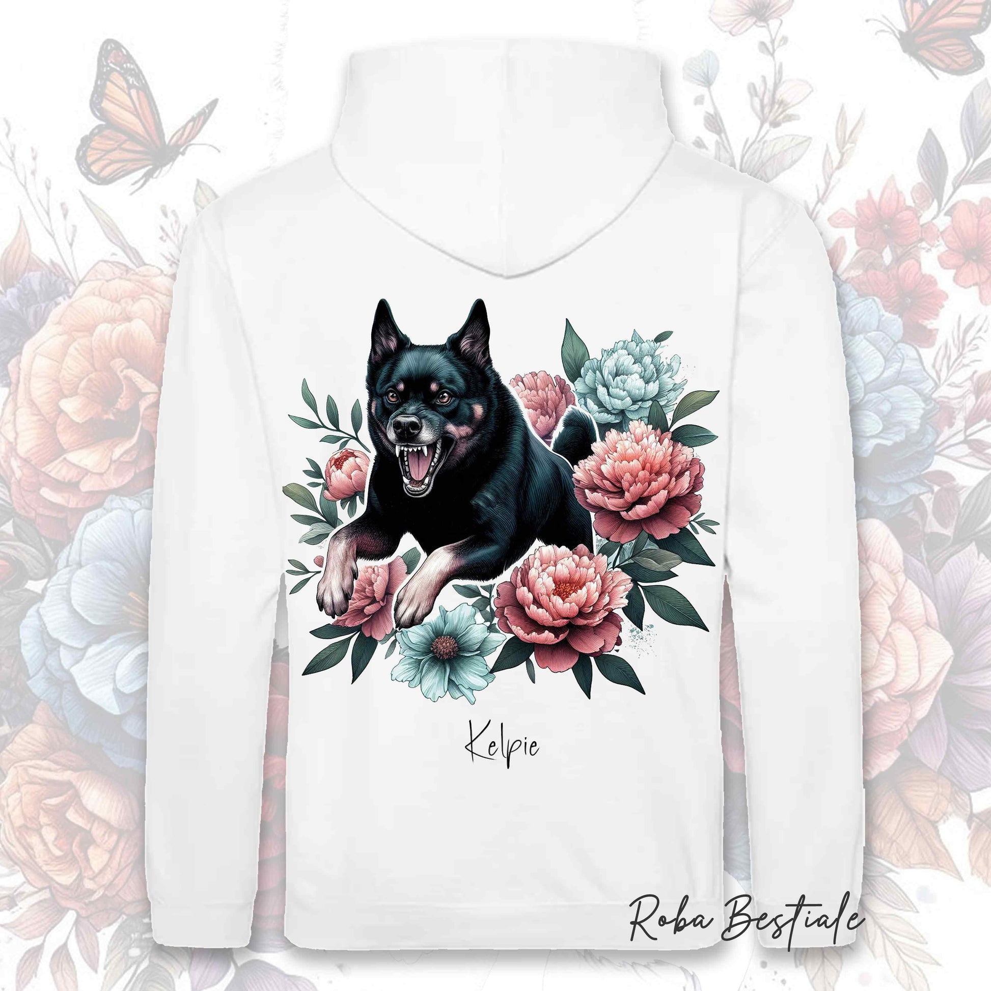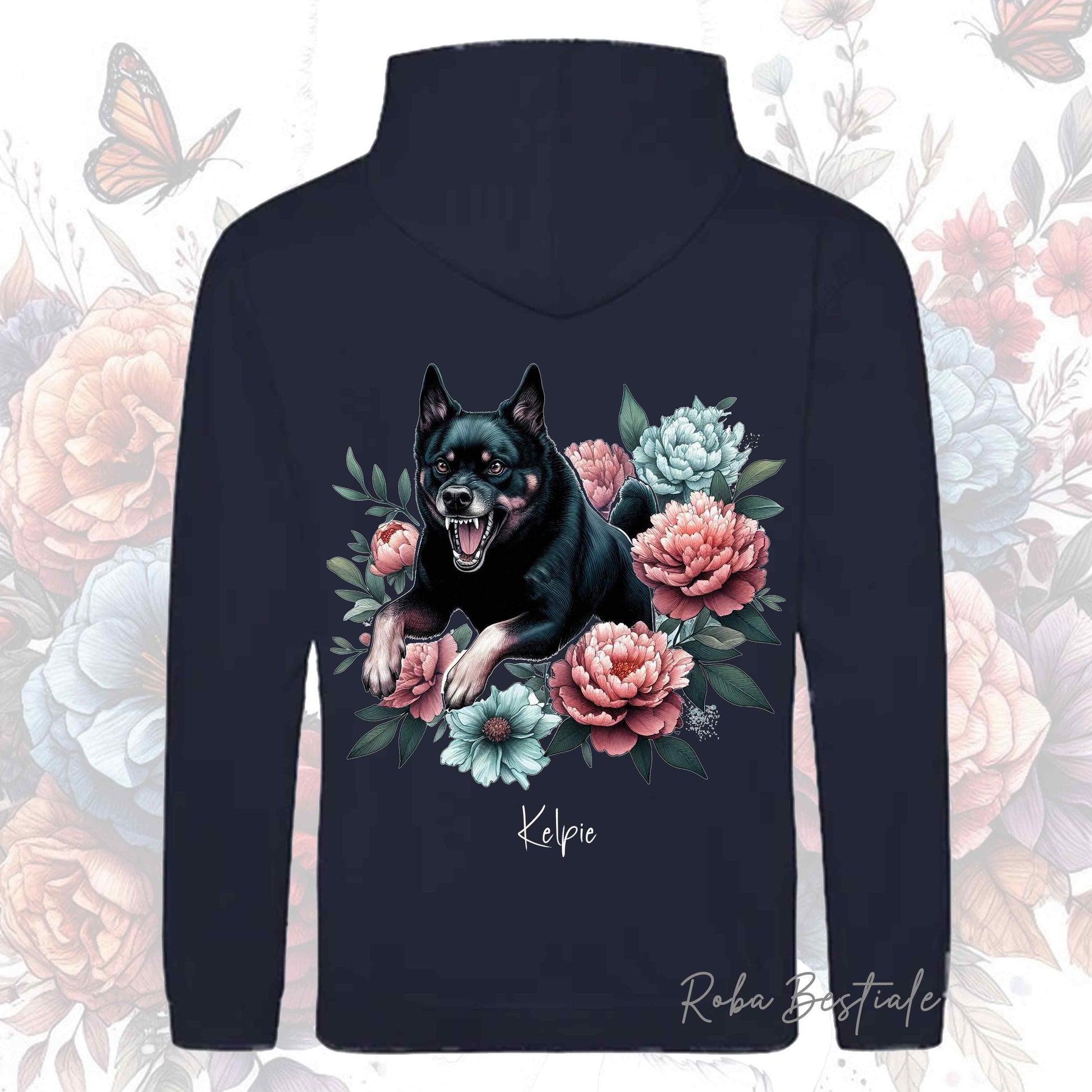 Felpa PEONY - AUSTRALIAN KELPIE Nero Focato - Con Cappuccio e Tasconi, Unisex, in tanti colori - dalla XS alla 5XL