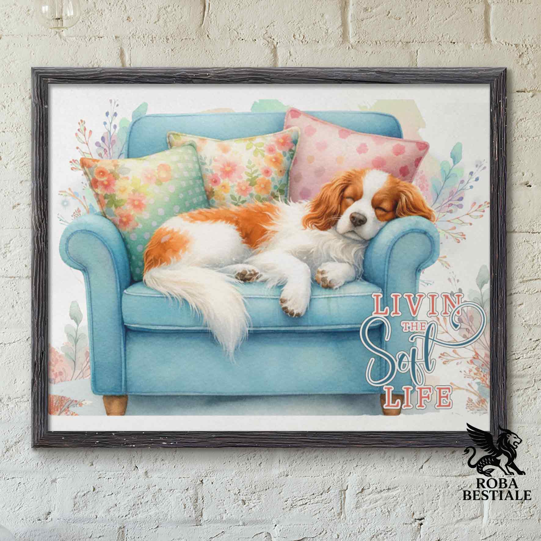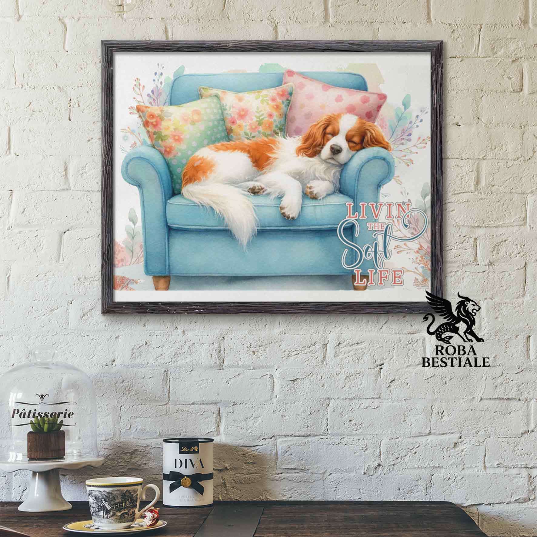 Quadretto SOFT LIFE - EPAGNEUL BRETON Bianco e Arancio - Con cornice in legno, formato A4