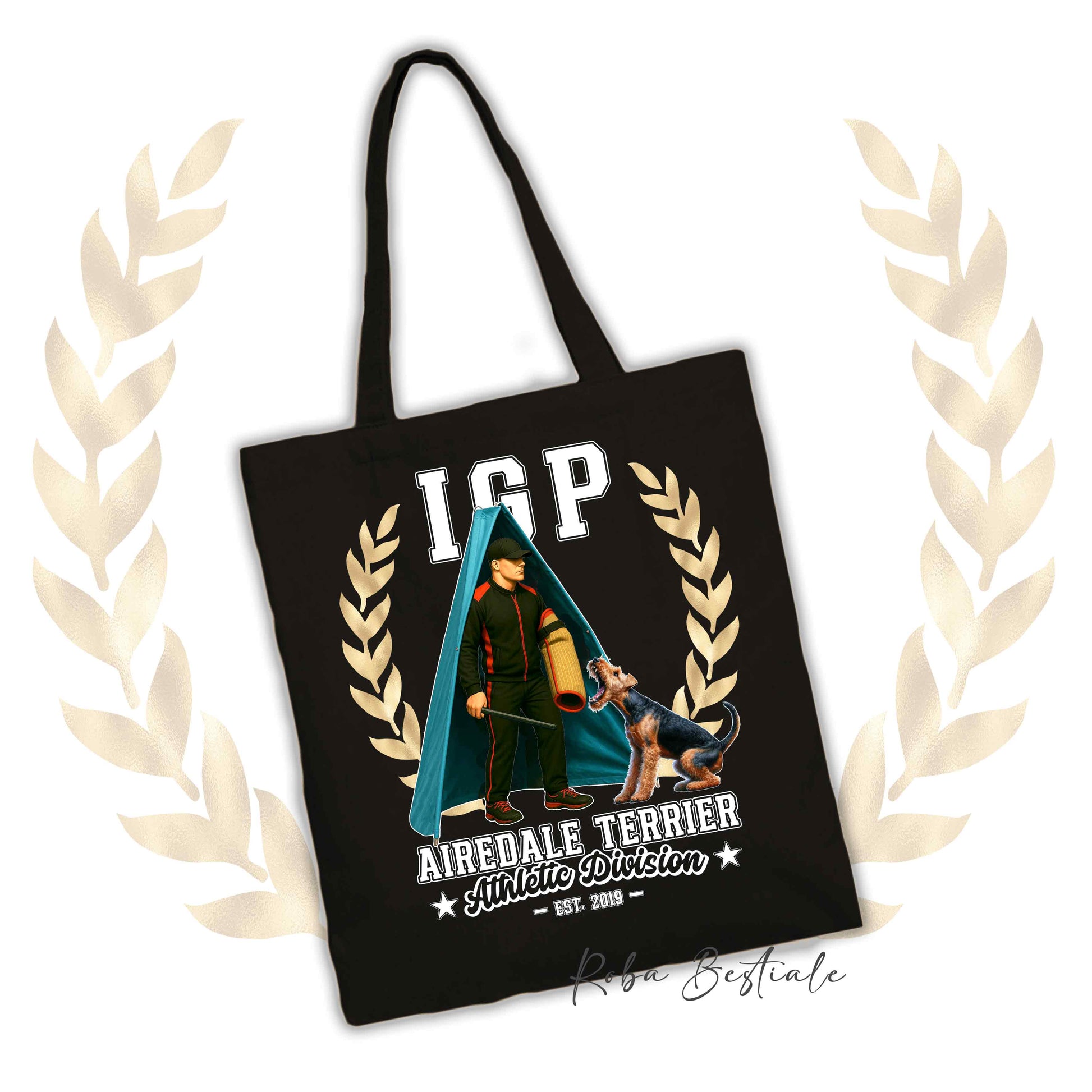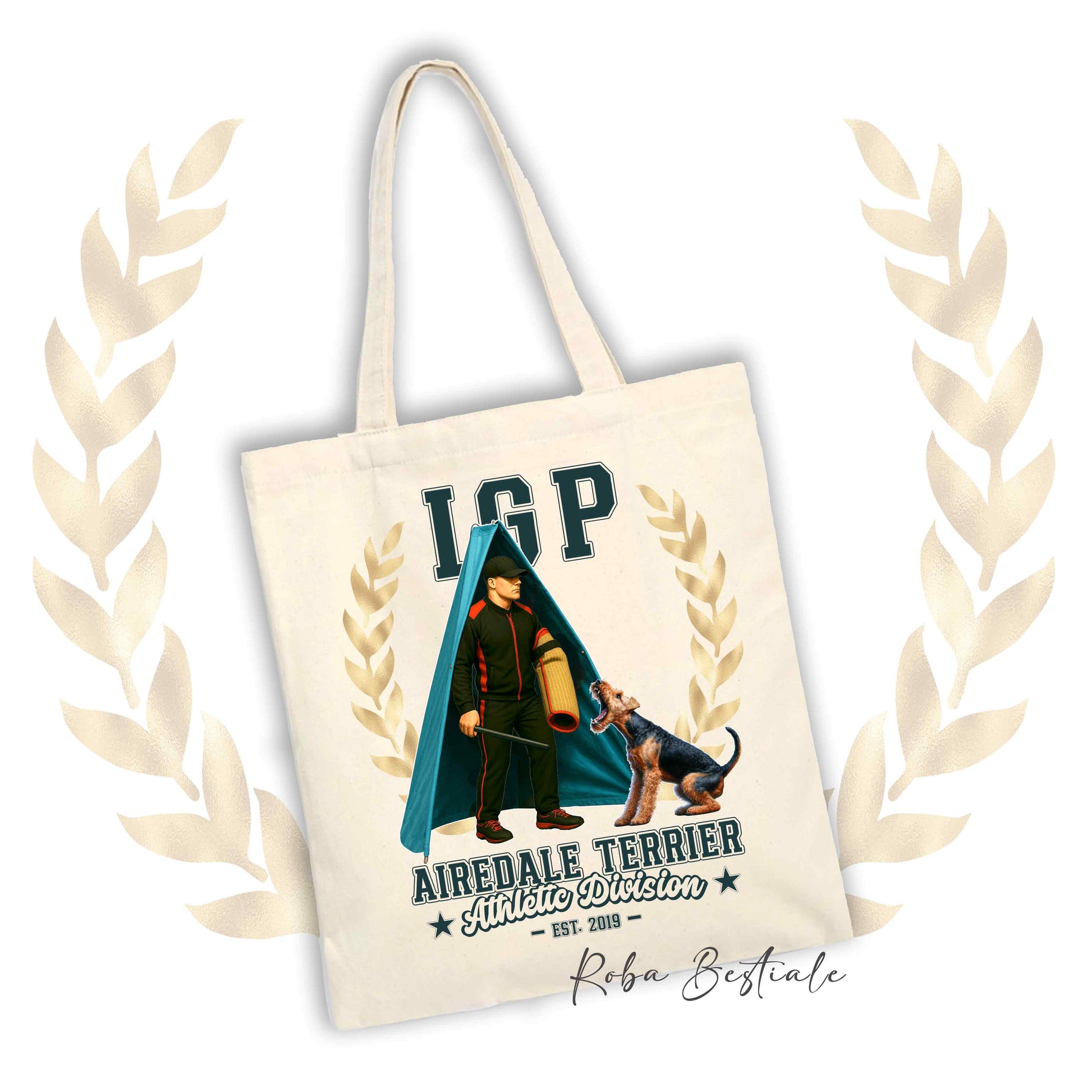 Shopper IGP REVIER - AIREDALE TERRIER - 100% Cotone, diversi colori disponibili