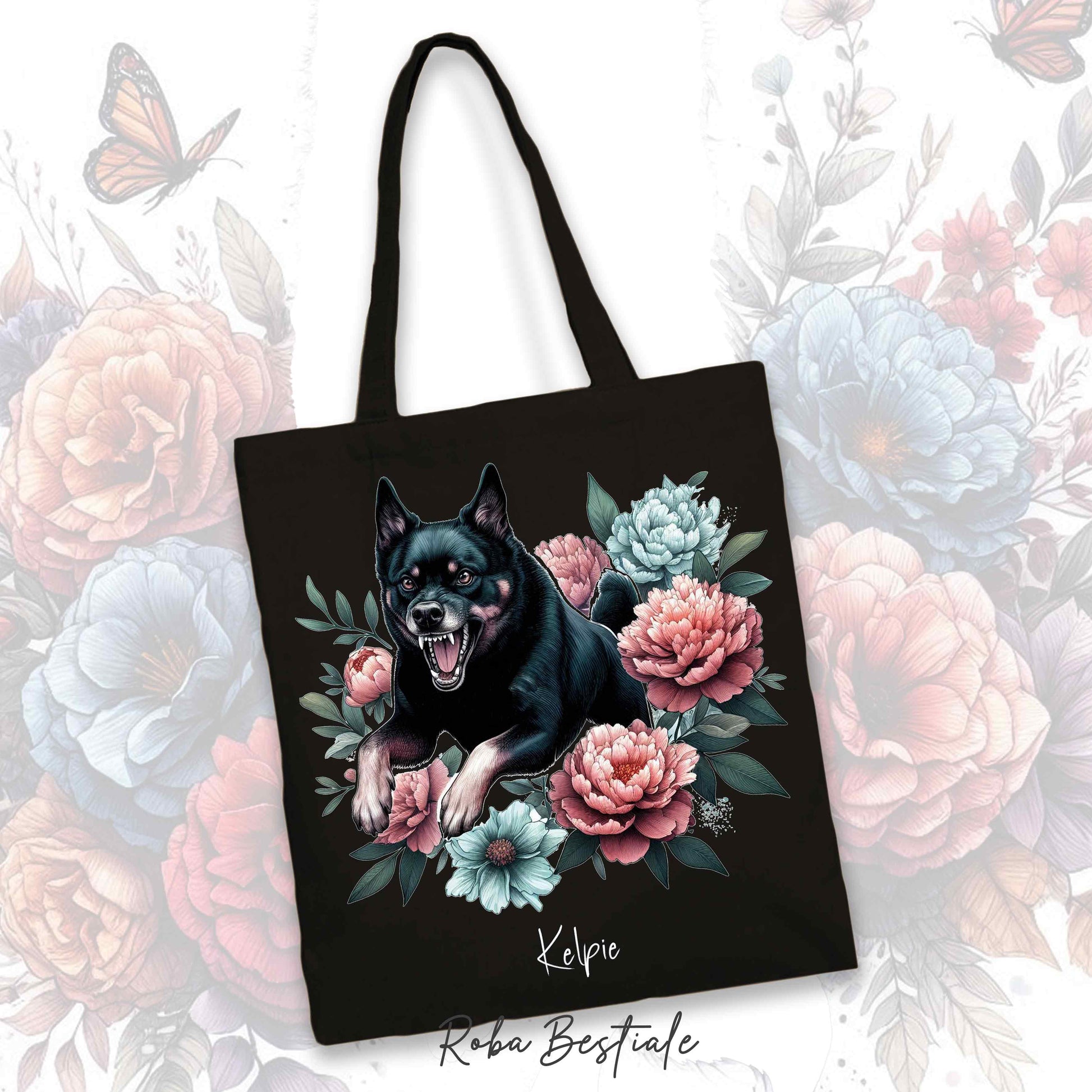 Shopper PEONY - AUSTRALIAN KELPIE Nero Focato - Diversi colori disponibili - 100% Cotone