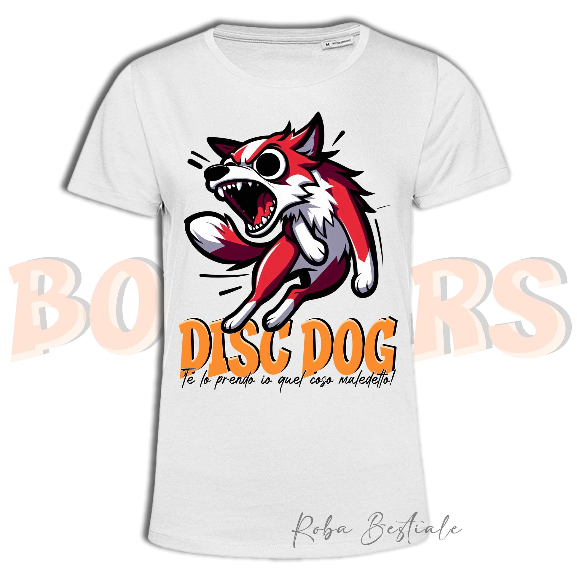 T-Shirt BONKERS - DISC DOG - BORDER COLLIE Bianco e Rosso - Uomo o Donna - dalla XS alla 5XL