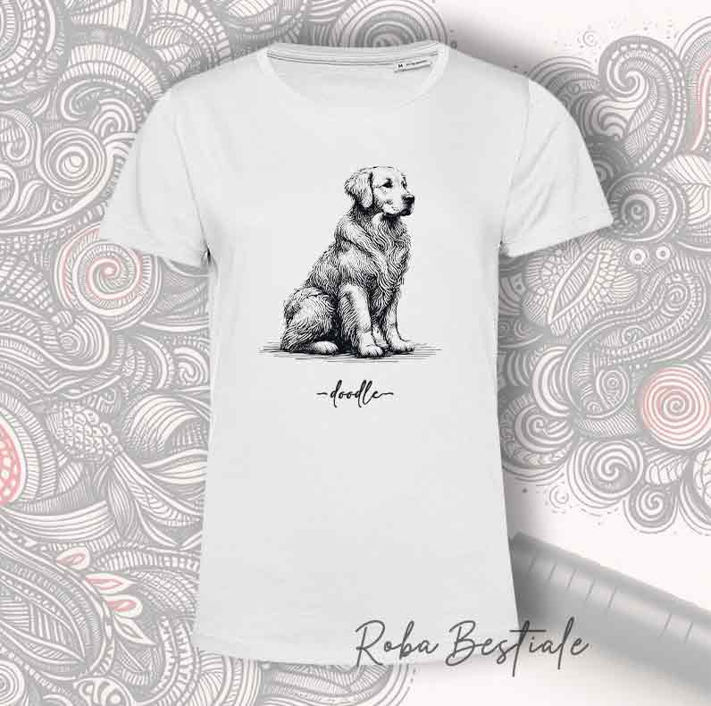 DOODLE T-Shirt - GOLDEN RETRIEVER - White, for Men or Women - XS to 5XL
