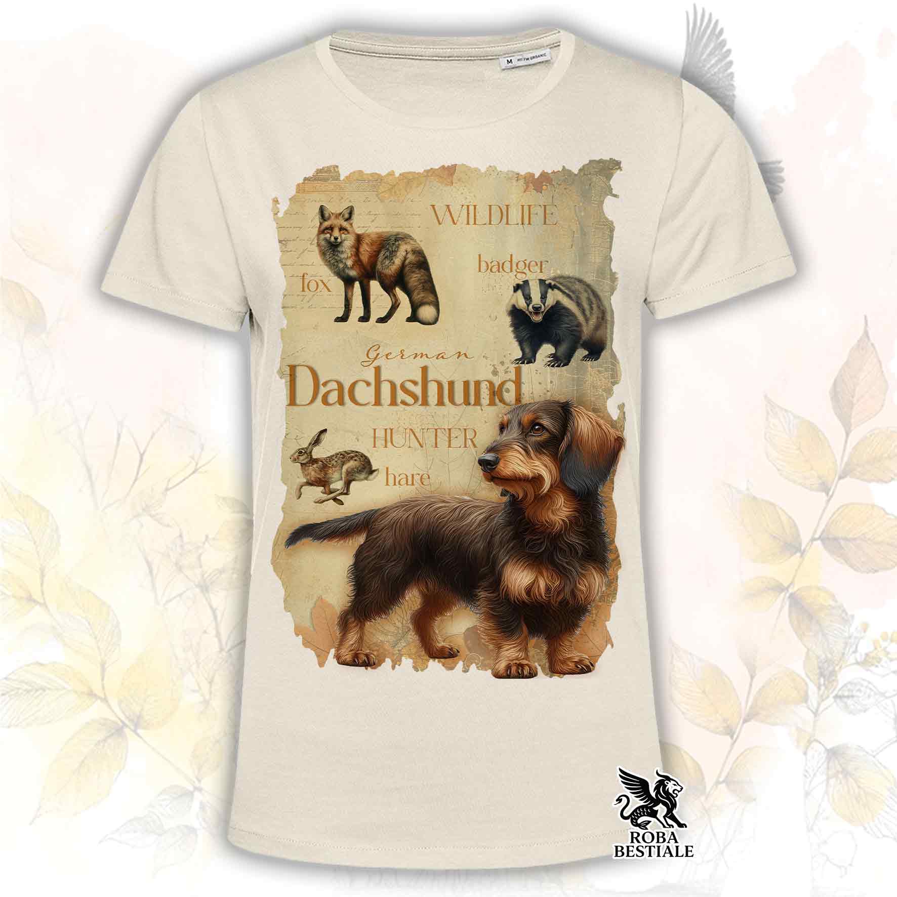 T-Shirt FIELD LEGACY - BASSOTTO TEDESCO a Pelo Duro Marrone Focato - Bianca o Beige, da Uomo o da Donna - dalla XS alla 5XL
