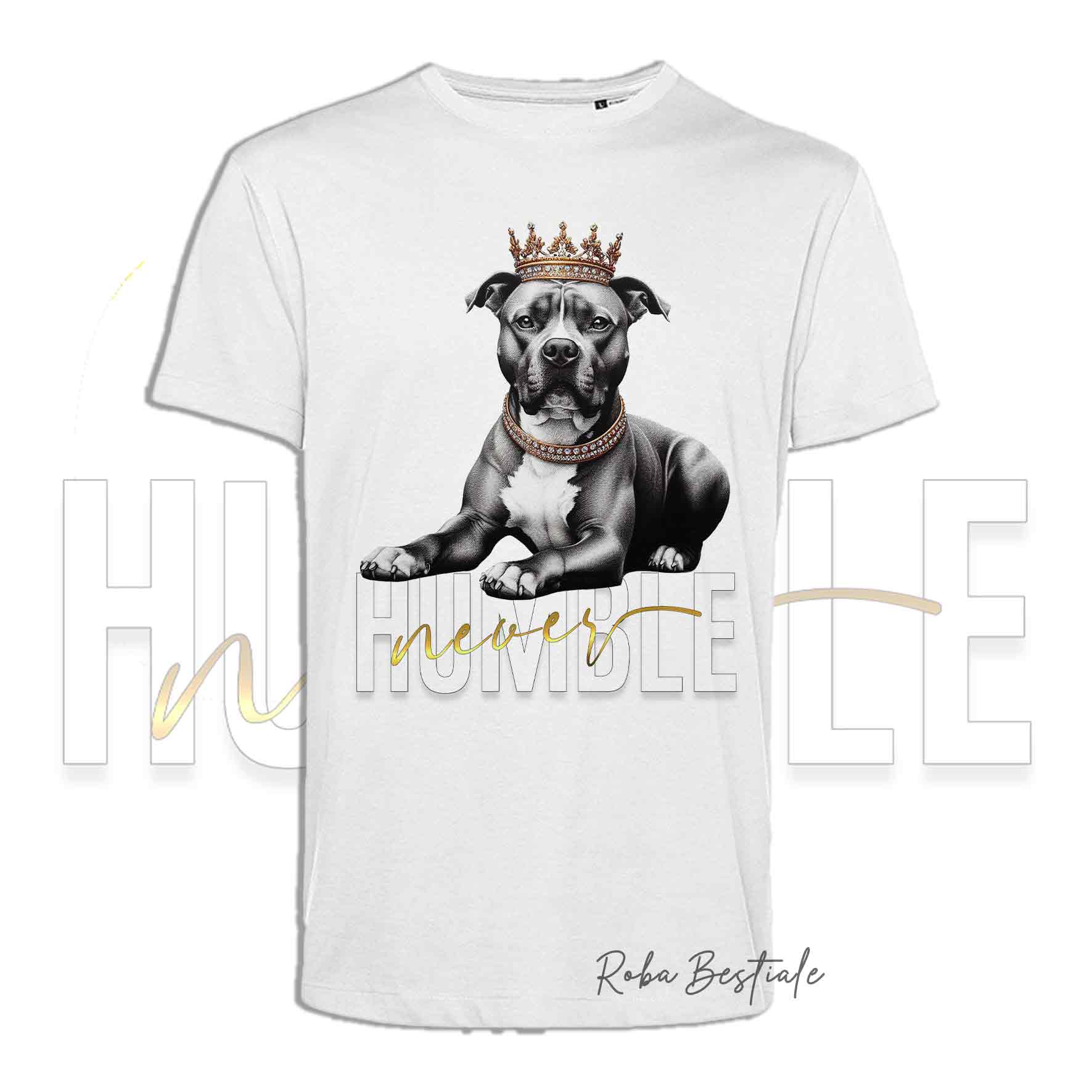 T-shirt NEVER HUMBLE - AMERICAN SHAFFORDSHIRE TERRIER - Bianca o Beige, Uomo o Donna - dalla XS alla 5XL
