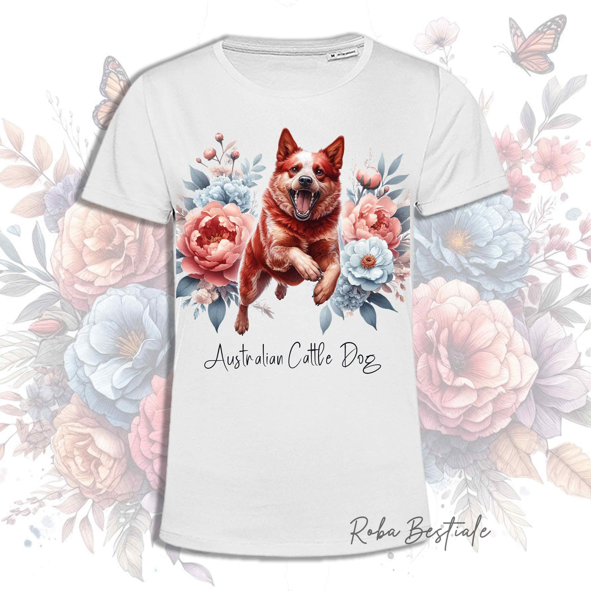 PEONY T-Shirt - AUSTRALIAN CATTLE DOG Red - White, Men or Women - XS to 5XL