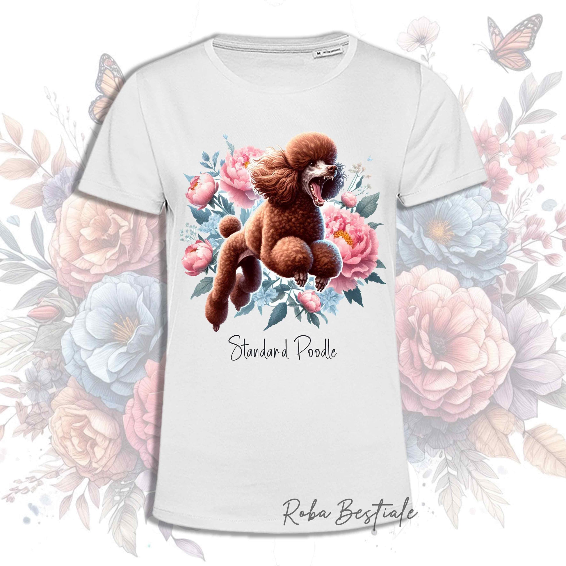 PEONY T-Shirt - Big Brown Poodle - White, Men's or Women's - XS to 5XL