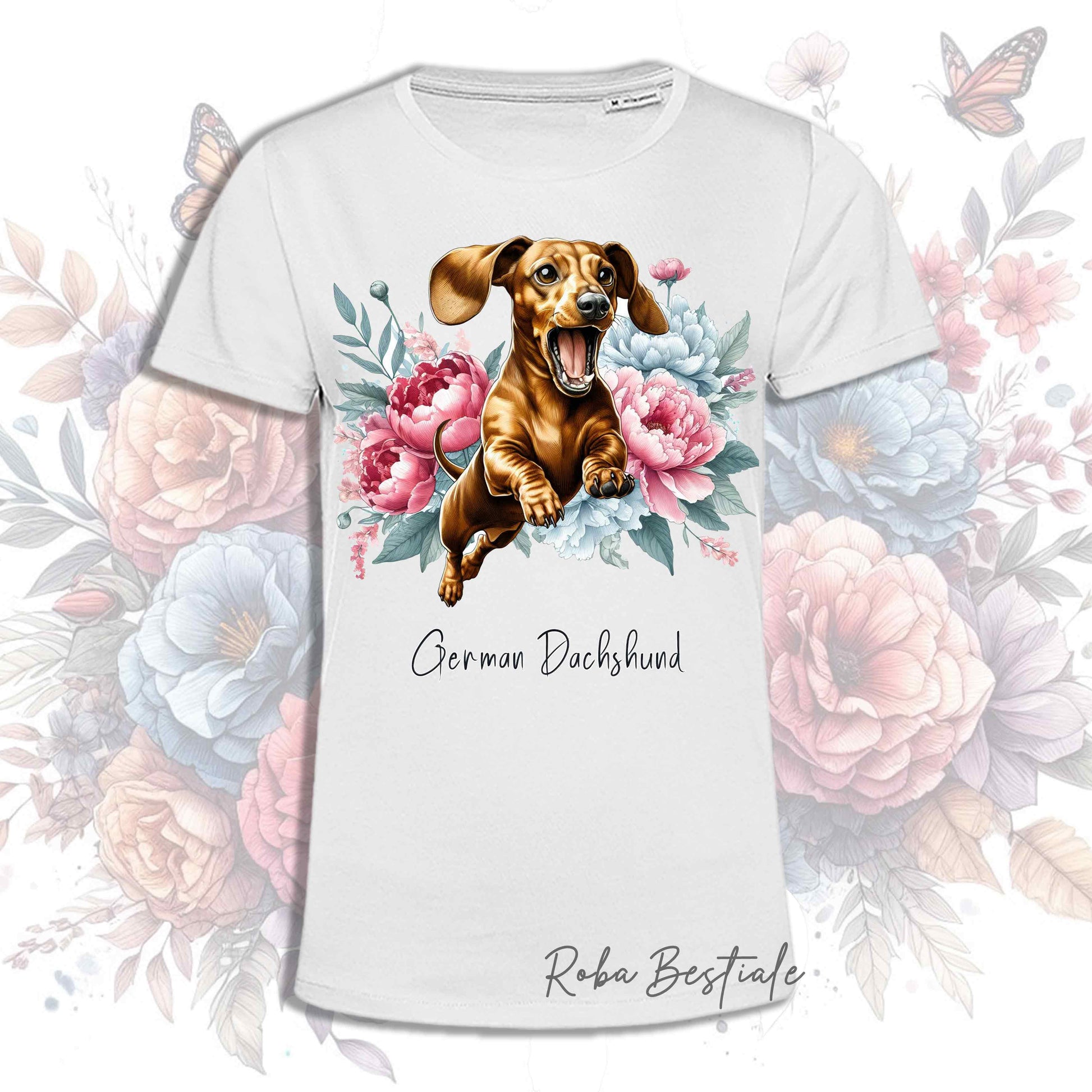 PEONY T-Shirt - Short-Haired Dachshund, Fawn - White, Men or Women - XS to 5XL