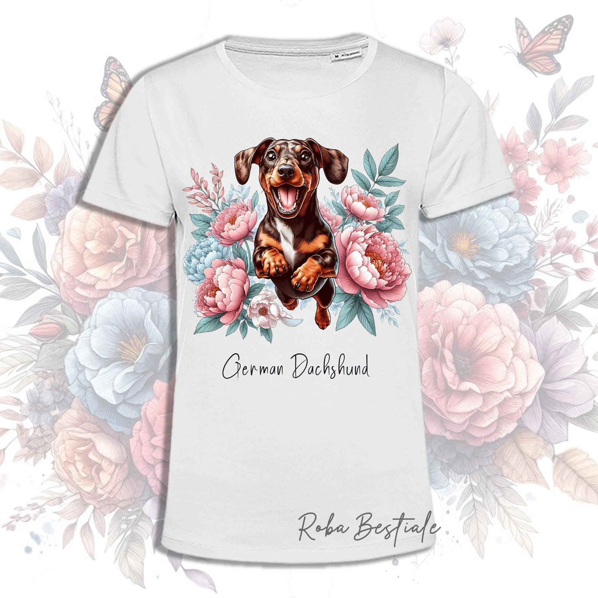 PEONY T-Shirt - Short-Haired Dachshund, Brindle - White, Men or Women - XS to 5XL