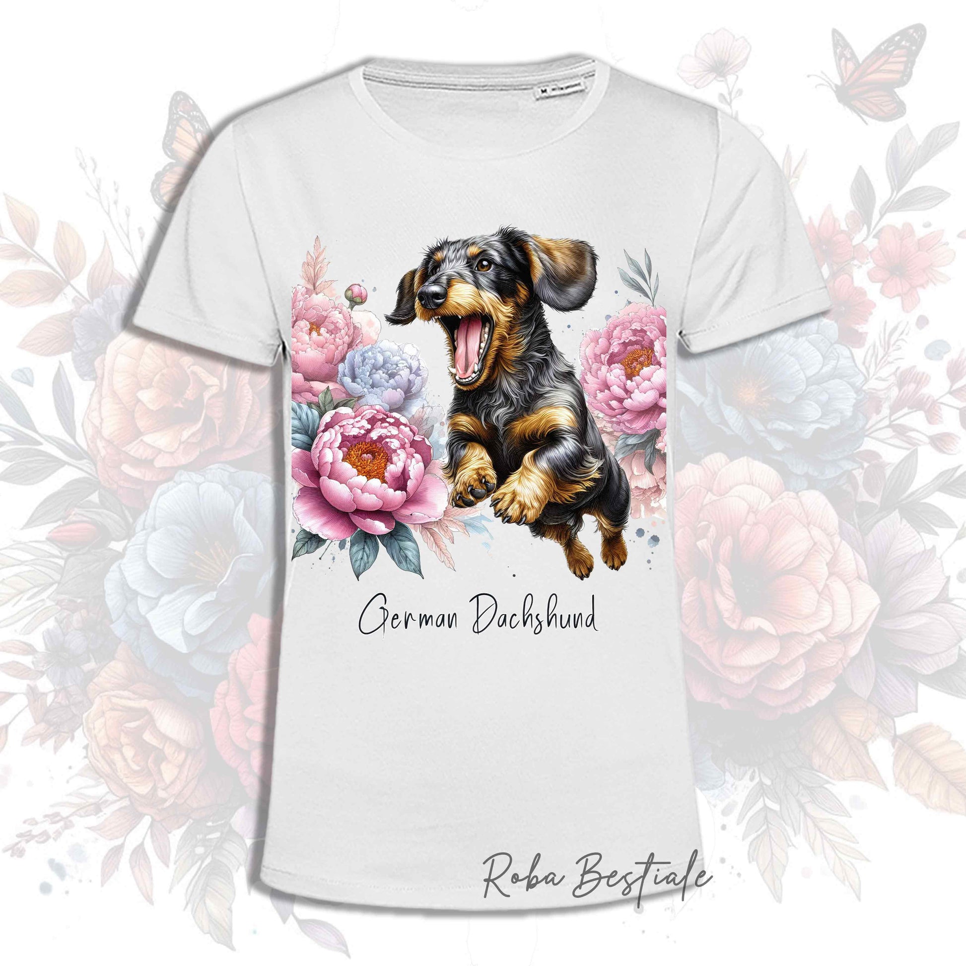 PEONY T-Shirt - Wirehaired Dachshund, Wild Boar - White, Men or Women - XS to 5XL