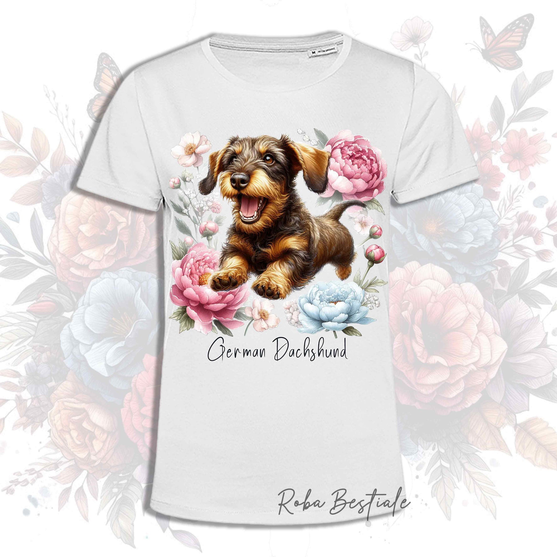 PEONY T-Shirt - Wirehaired Dachshund, Brown Boar - White, Men or Women - XS to 5XL
