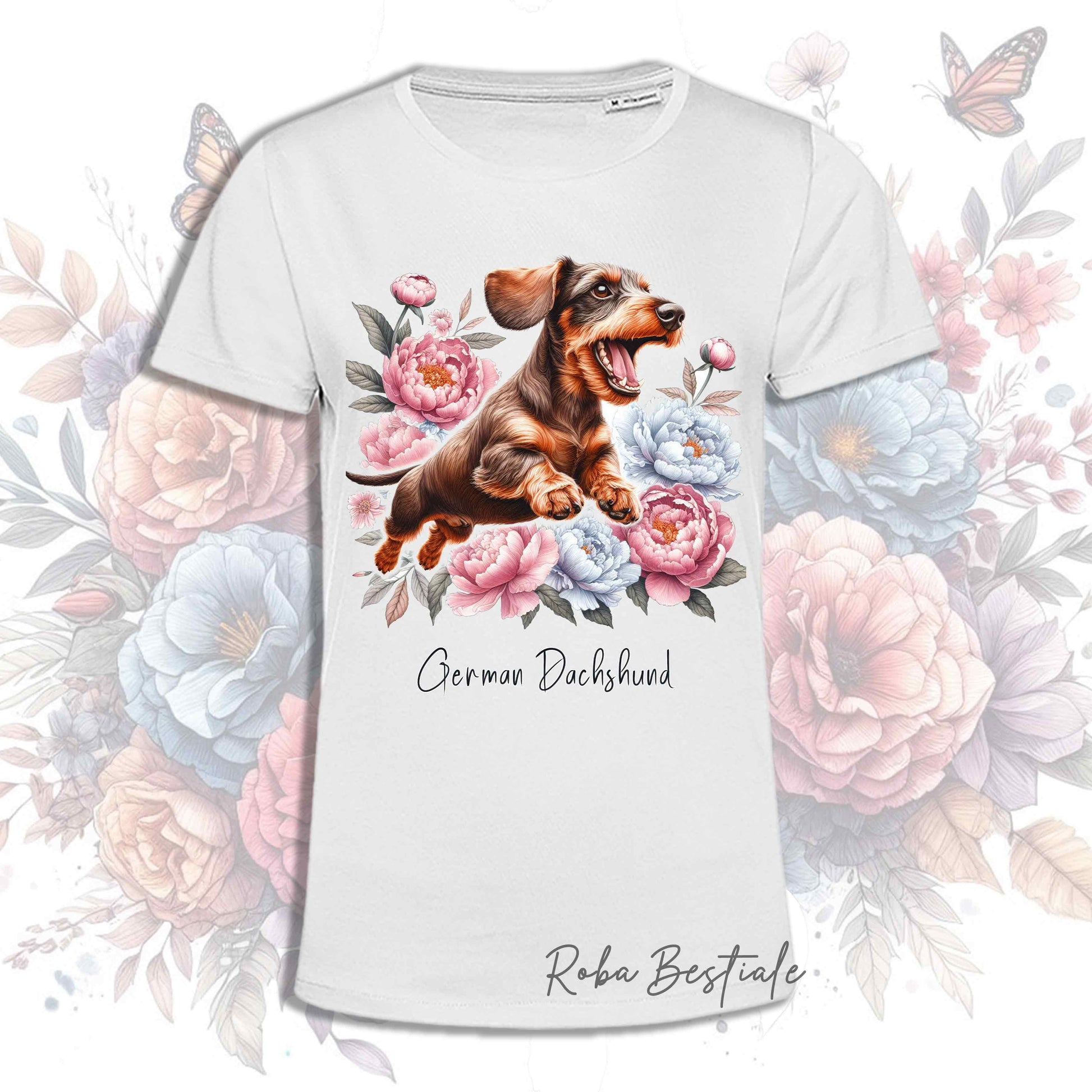 PEONY T-Shirt - Wire-Haired Dachshund, Brown and Tan - White, Men or Women - XS to 5XL