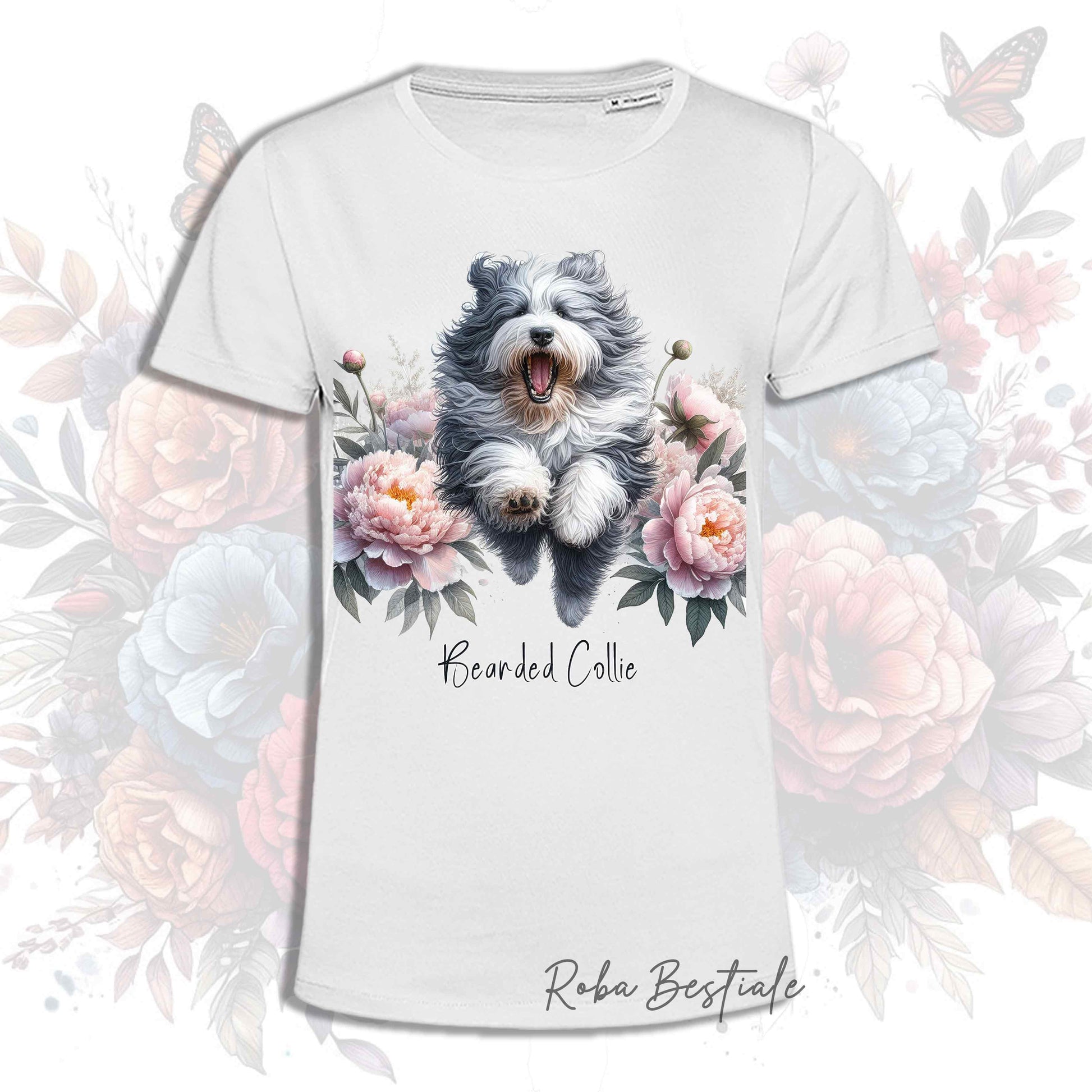 PEONY T-Shirt - BEARDED COLLIE Gray - White, Men or Women - XS to 5XL