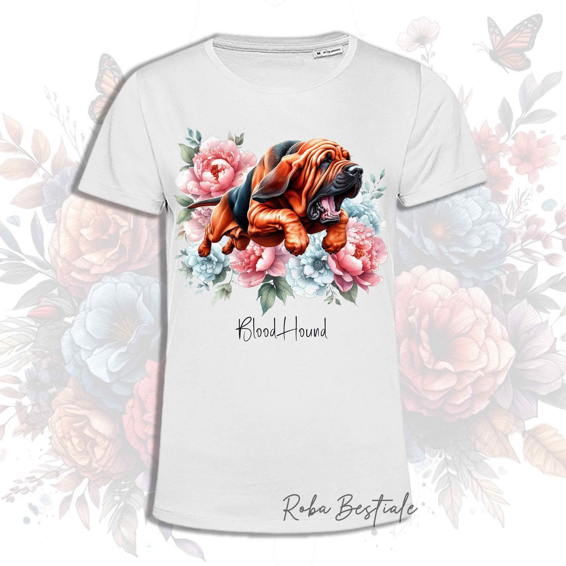 PEONY T-Shirt - BLOODHOUND Black and Tan (with saddle) - White, Men or Women - XS to 5XL